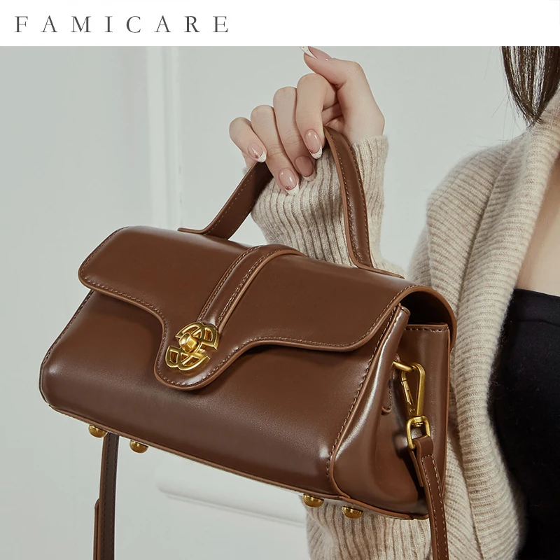 Осень-зима 2024, новая сумка через плечо из зернистой кожи, женская сумка премиум-класса с замком, легкая роскошная ручная шикарная сумка на плечо