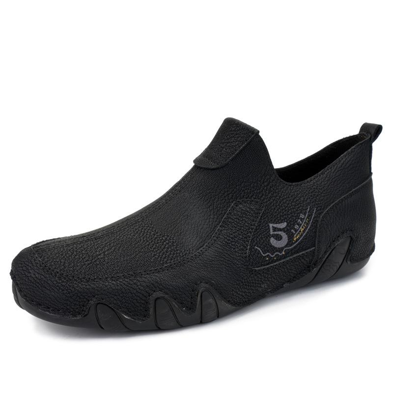 Осень и зима 2025 года, внешняя торговля, большой размер, утечка, помощь в сборе, повседневная мужская обувь Doudou, натуральная кожа, корейская версия, ленивая педаль 38 чёрный
