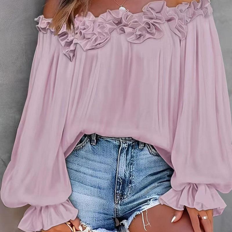 Осень новый стиль элегантный стиль повседневный с оборками на одно плечо без бретелек с длинным рукавом женская женская для работы все-сочетаемая темпераментная блузка SF437 XXL розовый