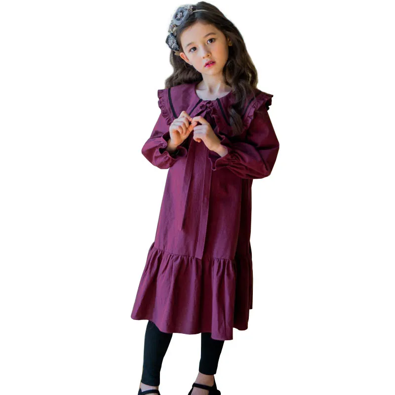Осень 2019, платье для девочек с длинным рукавом, вечерние платья для маленьких принцесс, милое детское свободное платье макси с бантом и обор...