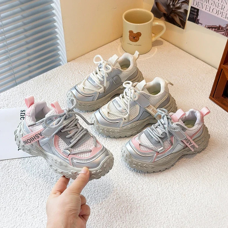 Осень 202, детские повседневные кроссовки для девочек, новая прогулочная обувь для малышей, нескользящая универсальная шикарная школьная обувь с дышащей сеткой