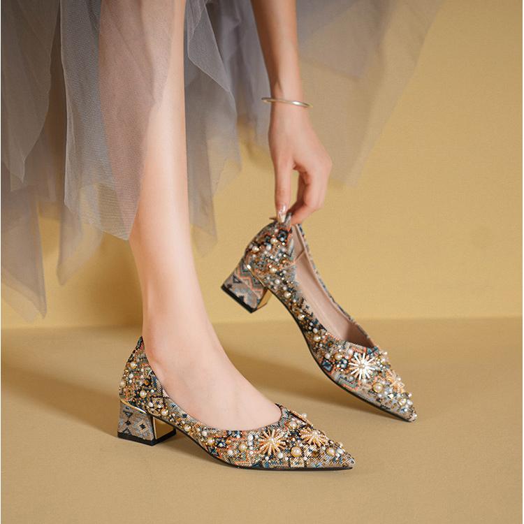 Остроконечные туфли в этническом стиле с платьем со стразами на плоской подошве, мягкая подошва Willow Nail, большой размер 42 разноцветный