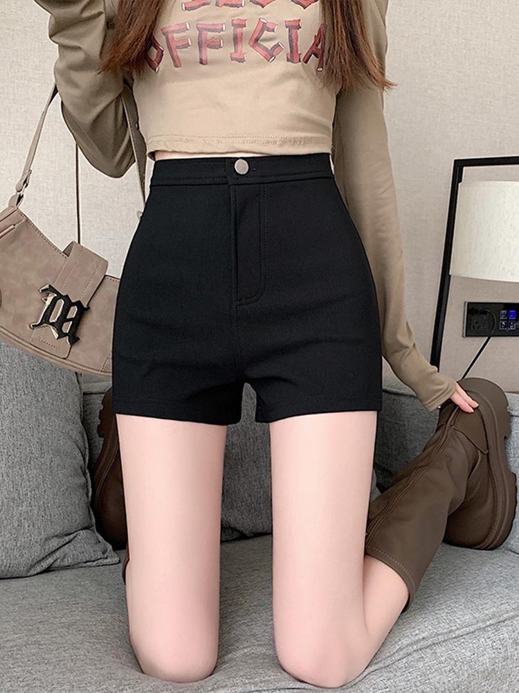 Острые Девушки Шорты А-силуэта с высокой талией черные стройнящие - Женская летняя корейская мода XS чёрный