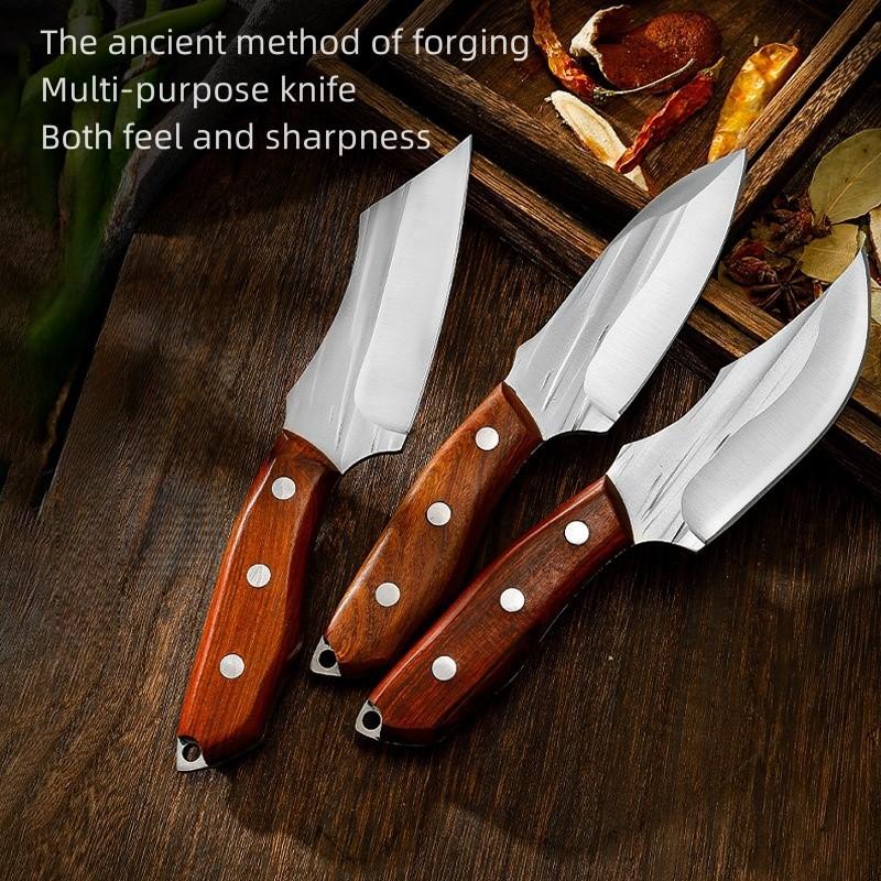 Острый универсальный нож из нержавеющей стали, кованый, из трех частей, для бытовой кухни, для резки фруктов, для обвалки мяса, с ручкой из цельного дерева