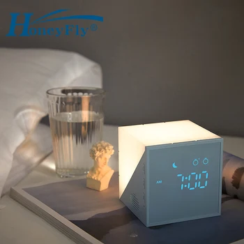 HoneyFly Cube LED Alarm Clock Night Lamp USB Rechargeable Voice Tap Sensor Alarm Clock Sleep Training Smart Timing Snooze Gift