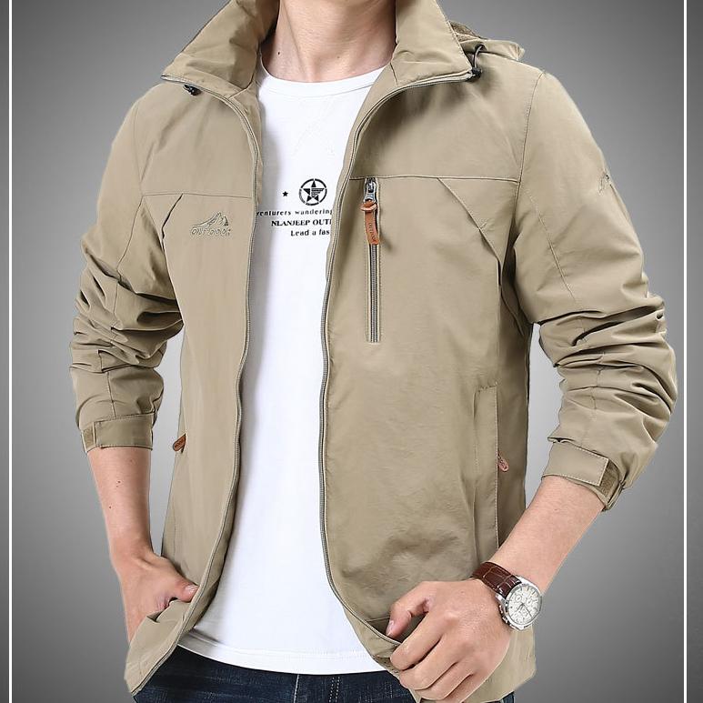Осінь на природі Чоловіча куртка-карго з капюшоном Пальто-вітровка Піші прогулянки Кемпінг Риболовля Тактичний чоловічий одяг Дихаючі куртки-бомбери M хакі
