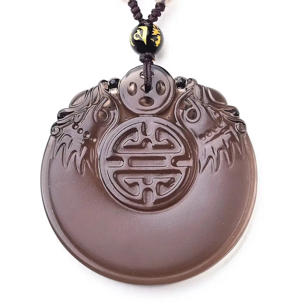 Natural ice obsidian double dragon necklace Amulet pendant bead with adjustable chain