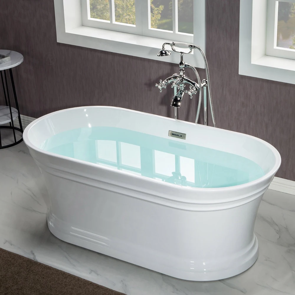 Отдельно стоящие белые акриловые ванны Современная стоевая ванна для замачивания с полированным хромом Сертифицированный CUPC с прорезями