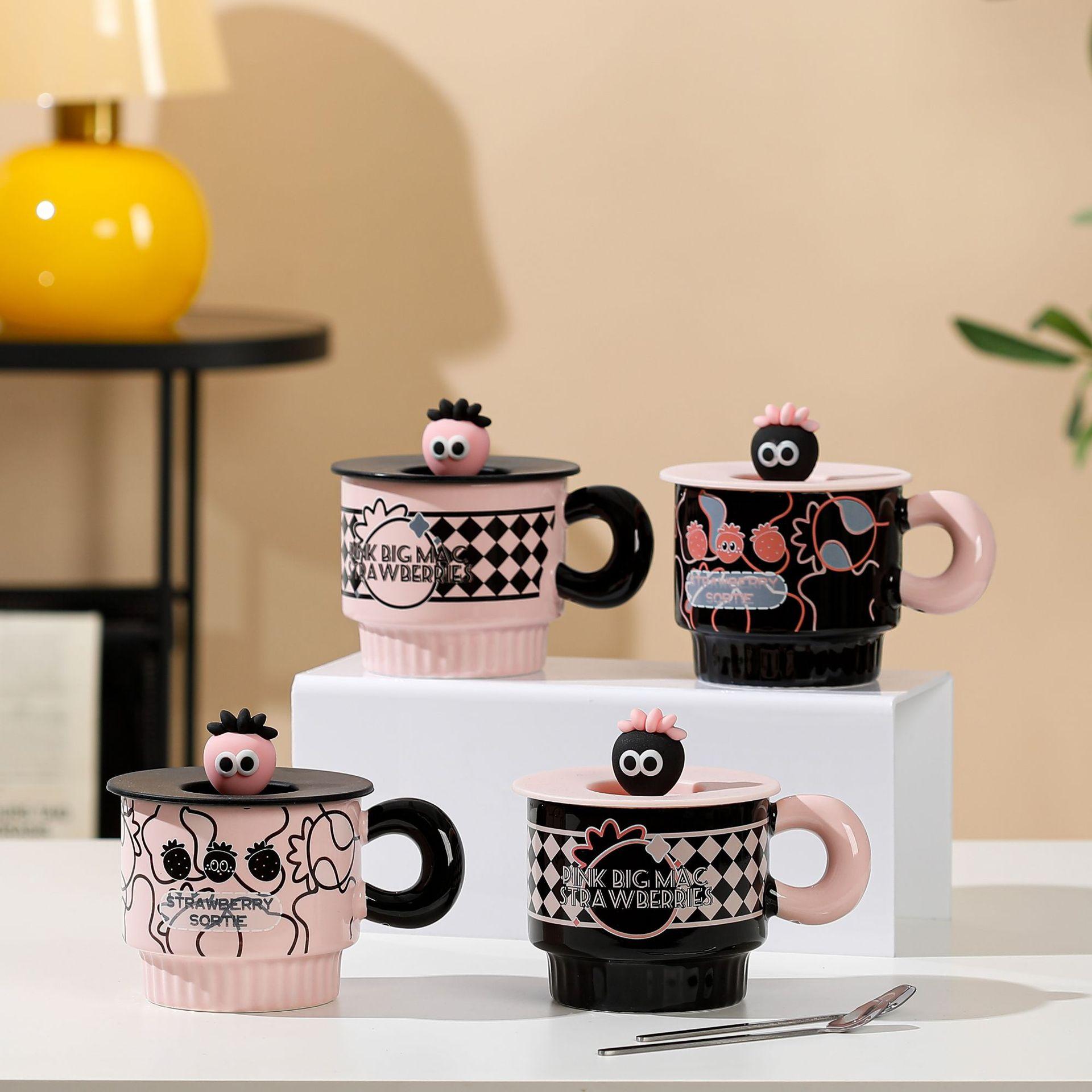 Открывающаяся маленькая подарочная кружка-диск с крышкой и ягодами ежевики, ложка, высококачественная большая емкость для воды, простая бытовая кружка 350ML
