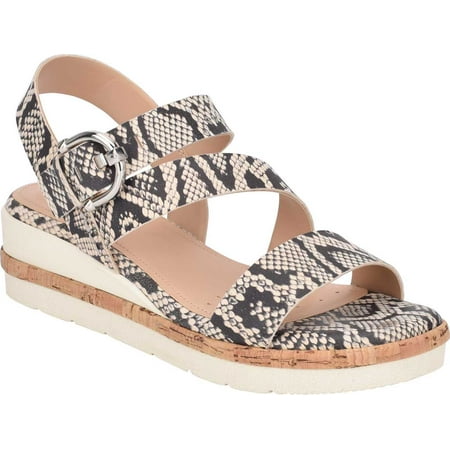 Women s Easy Spirit Evolve Kassie Strappy Wedge Sandal Ivory Snake Leather 11 M