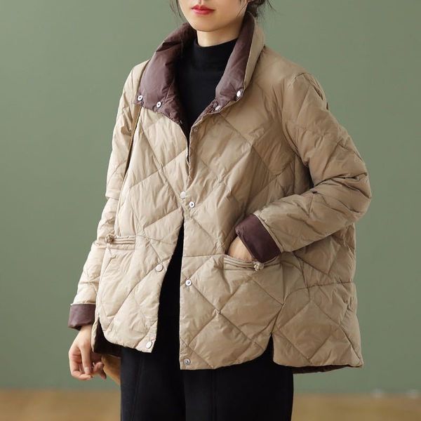 women's down & parkas women thick warm jacket 2021 autumn winter fashion loose stand collar single breasted pockets light korean coat, Black