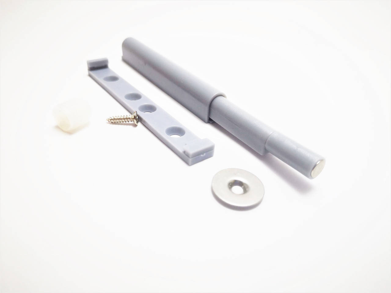 Отстрел накладной на пружине с магнитом серый - это выталкиватель (отстрел, толкатель, отбойник), который используется для открывания дверного фасада без ручек, с помощью одного нажатия. Что очень актуально в современных интерьерах. Кроме того такой "апгрейд" можно применить к существующей мебели, которая уже находится в пользовании. Тем самым сделать ее более комфортной, удобной и функциональной.