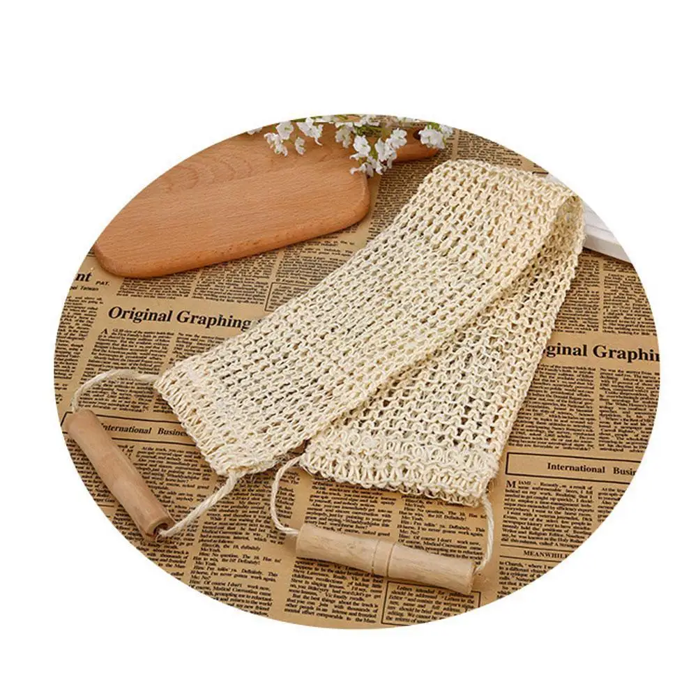 Отшелушивающее полотенце для душа из омертвевшей кожи, Прочное деревянное банное полотенце с ручкой для спины, сизаль, уход за Скруббером, п...