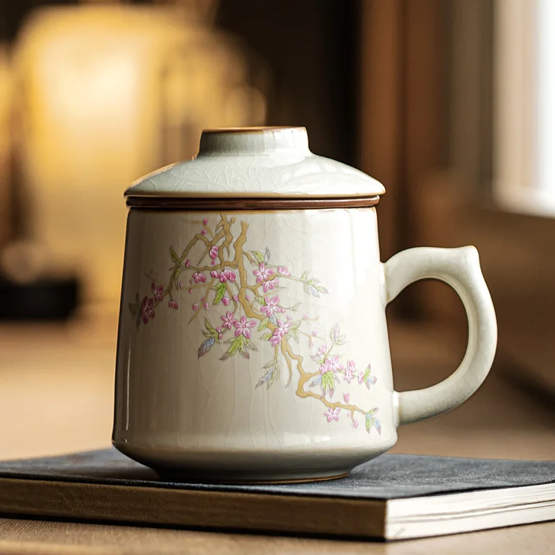 Офисная кружка Peach Blossom Spring Yellow Ru Kiln с фильтром, простая чайная чашка, керамическая чашка, разделение воды для чая