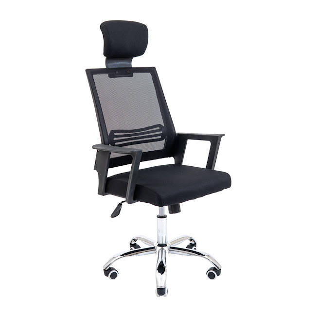 Спинка обтянута нейлоновой сеткой, а сидение и подголовник - мебельной тканью. Такое расположение обивок делает кресло легким, оно выглядит стильно и воздушно. Оригинальный каркас высокой спинки, в основе которого пластиковая рама и нейлоновая сетка помогают создать приятный дышащий эффект и при этом надежную опору в поясничной области.