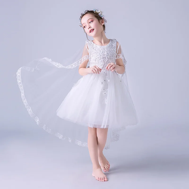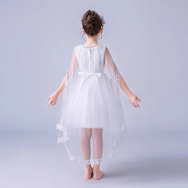 Официальные платья для девочек, детское кружевное Тюлевое платье с лифом для вечеринки в честь Дня Рождения с накидкой, бальное платье для д...