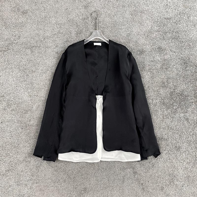 Оформление: Черно-белое шелковое пальто с V-образным вырезом - Съемное, в стиле ретро, с широкими брюками в западном стиле. Medium чёрный