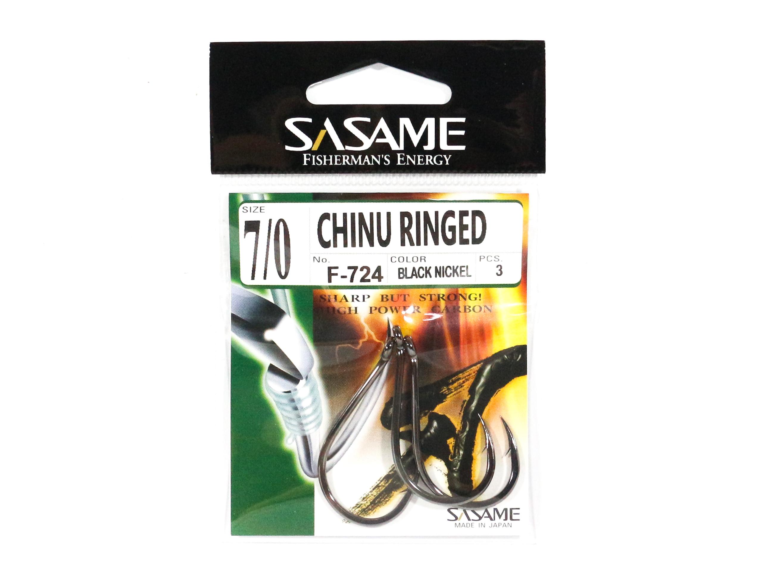 Офсетный крючок Sasame F-724 Chinu с кольцом, черный, размер 7/0 (1256)