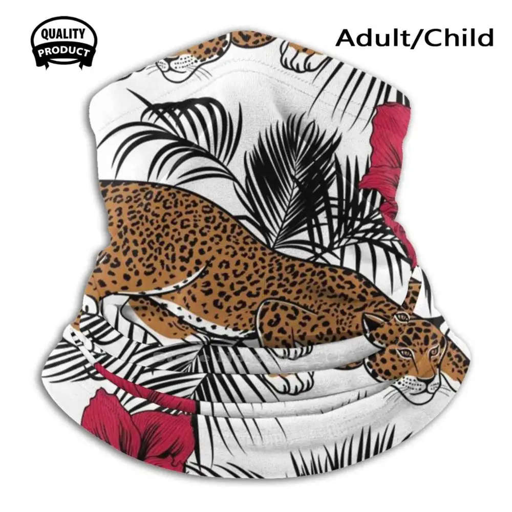 Охотничий Ягуар. Ветрозащитная спортивная мягкая теплая маска для рта, амарилис, животное, зристая, пальмовое растение, лист, экзотическое ц...