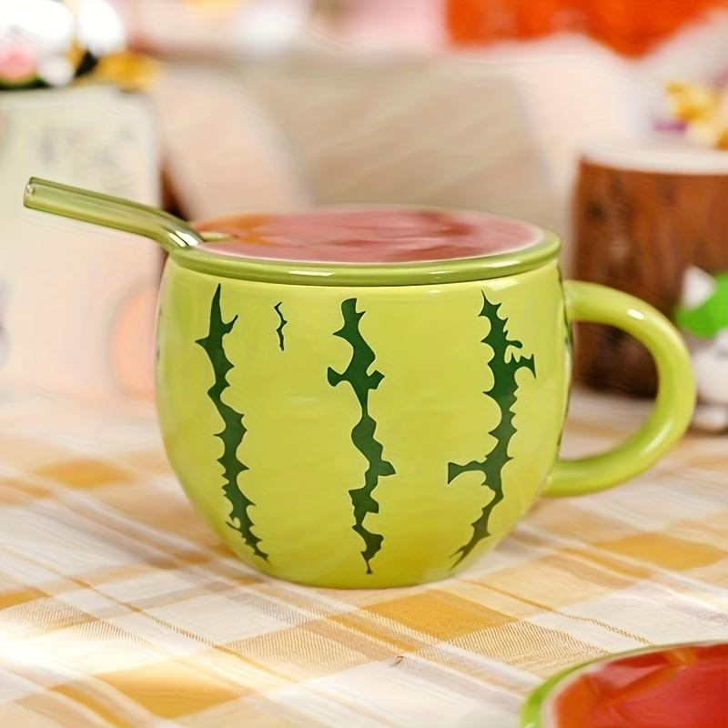 Очаровательная керамическая кружка на тему арбуза с соломинкой, большой вместимости, герметичная, многоразовая, только ручная мойка, идеально подходит для кофе, чая, молока и воды