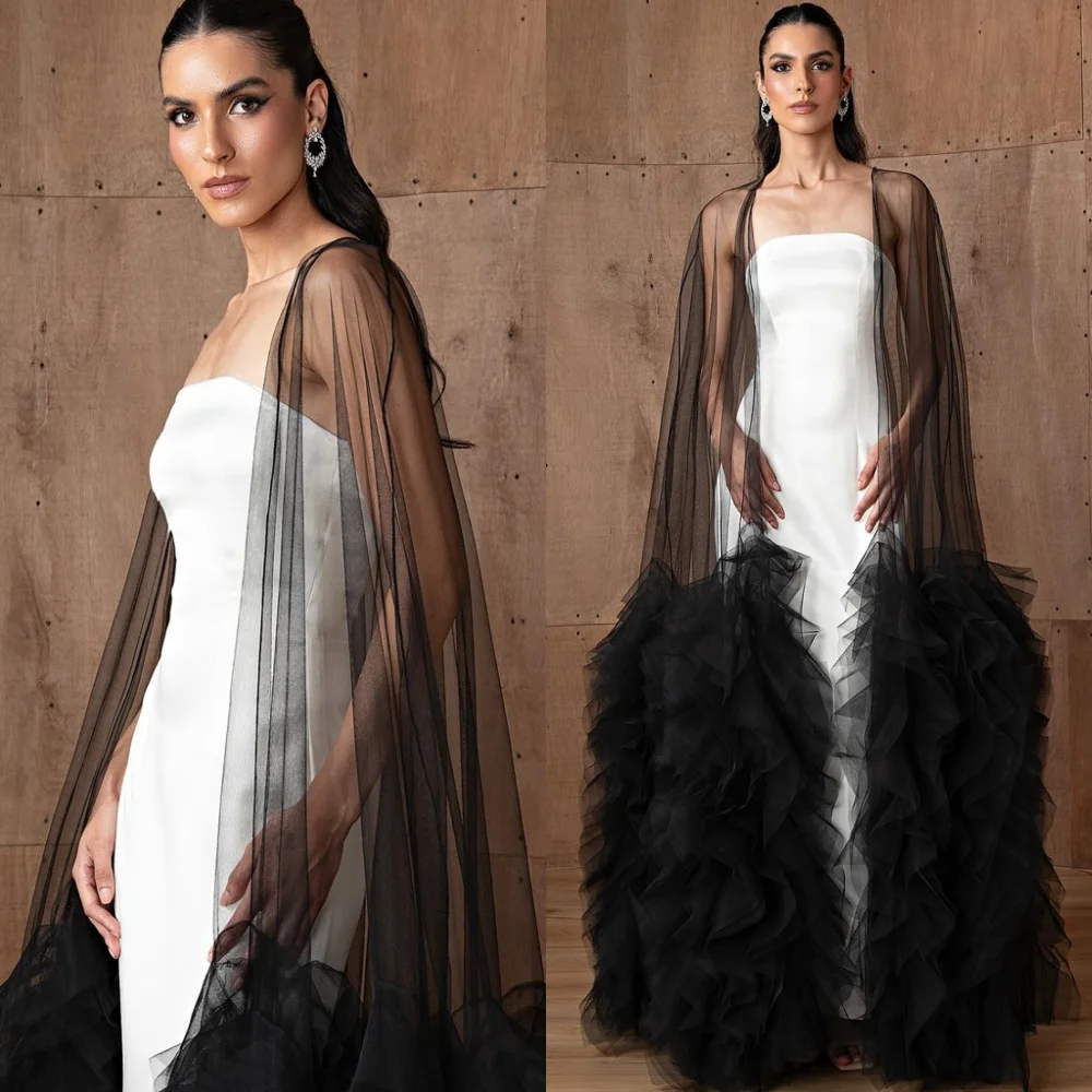 Очаровательное вечернее платье из тюля по индивидуальному заказу. Изысканная шаль без бретелек. Платья знаменитостей. Классические платья со шлейфом для особых случаев.