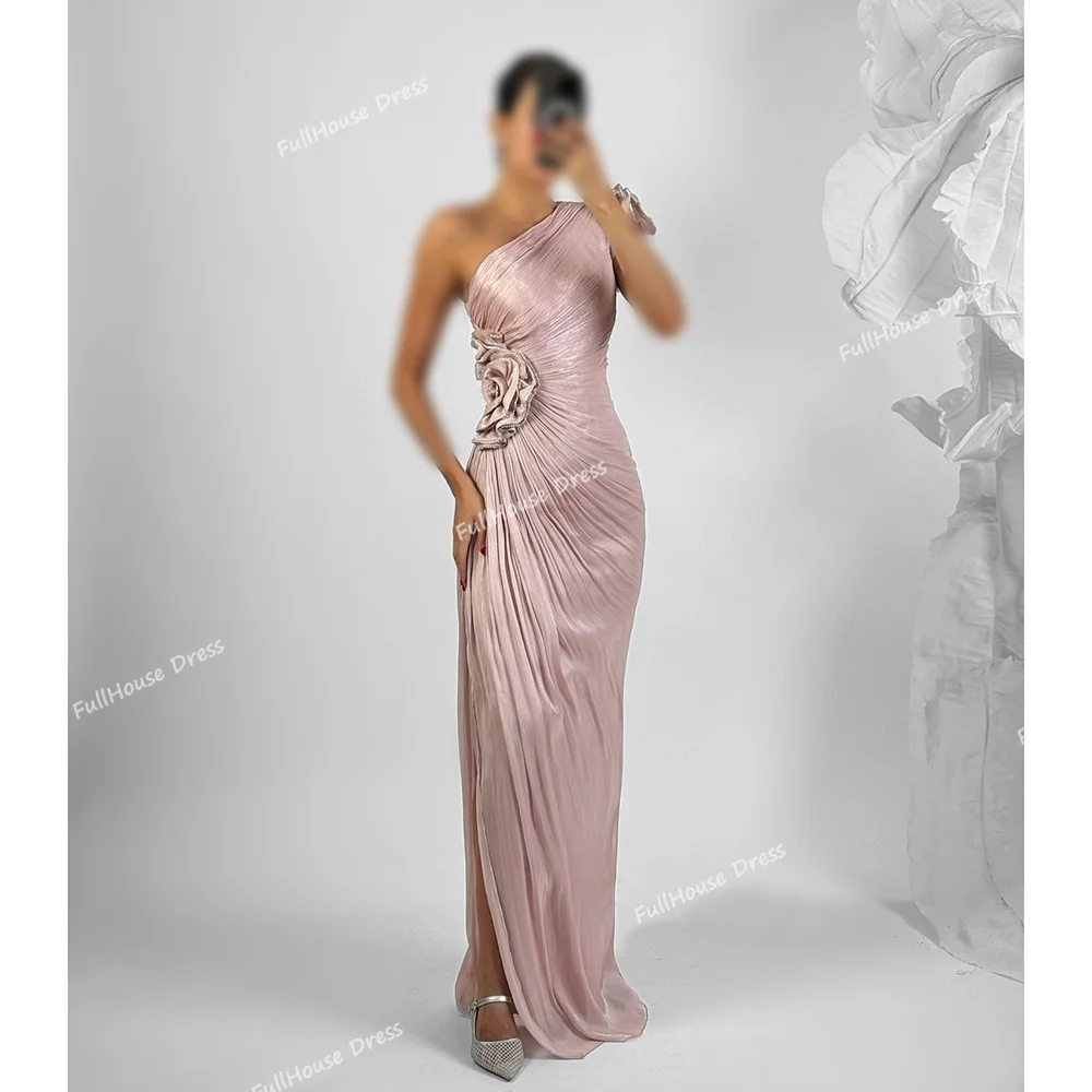 Очаровательное многоярусное плиссированное длинное вечернее платье на одно плечо на заказ, сексуальное вечернее платье с открытой спиной и цветами ручной работы