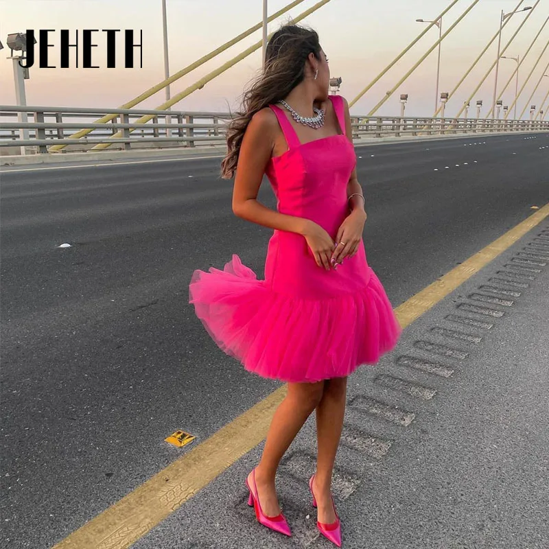 Очаровательные короткие платья JEHETH из тюля с квадратным вырезом для встречи выпускников 2023 винтажные атласные вечерние бальные платья до колен на заказ JEHETH Очарование Короткий Square Возврат к школе Платье для