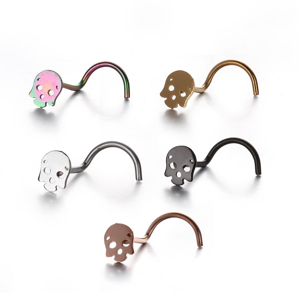 Очаровательные ювелирные изделия из хирургической стали, пирсинг, обруч для ноздри, винт с головкой черепа, кольцо-гвоздик в носу