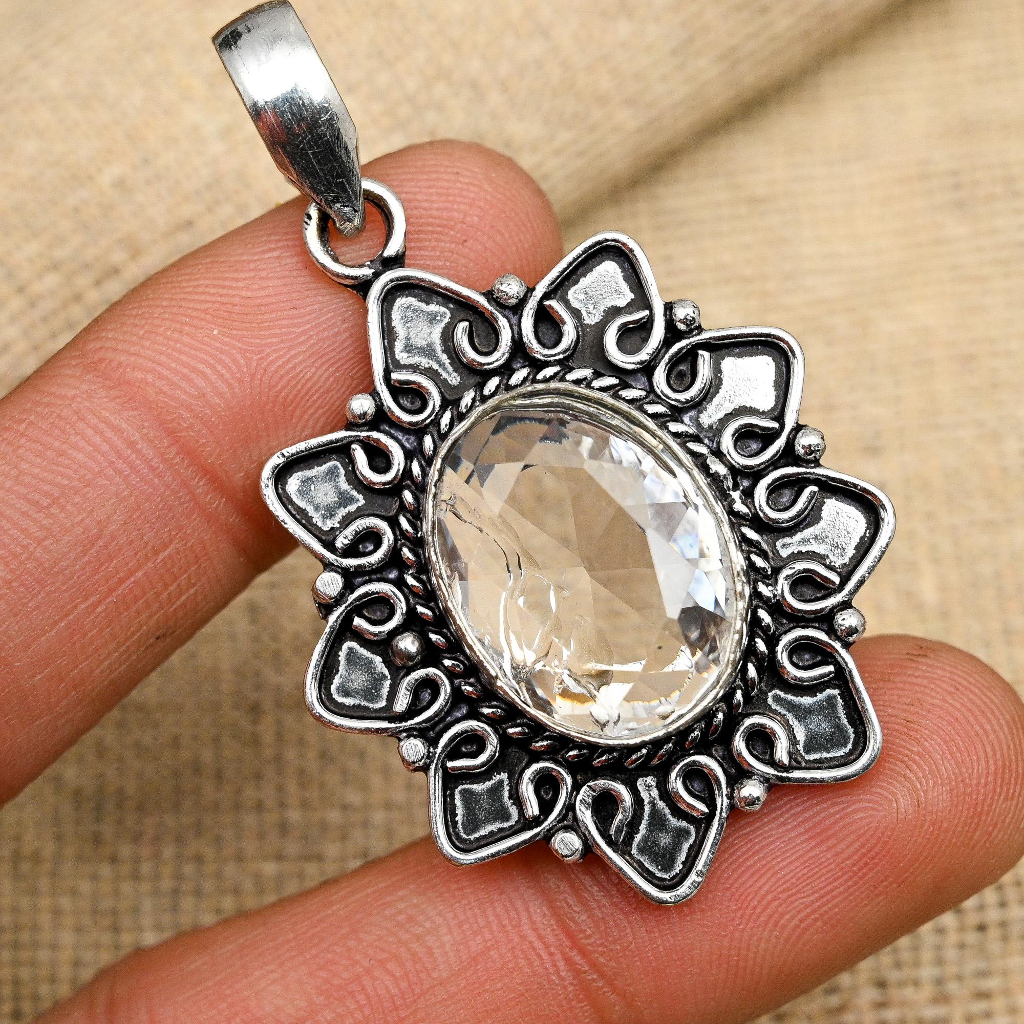 Очаровательный белый топаз, драгоценный камень, стерлинговое серебро 925 пробы, ювелирные изделия ручной работы, элегантный кулон