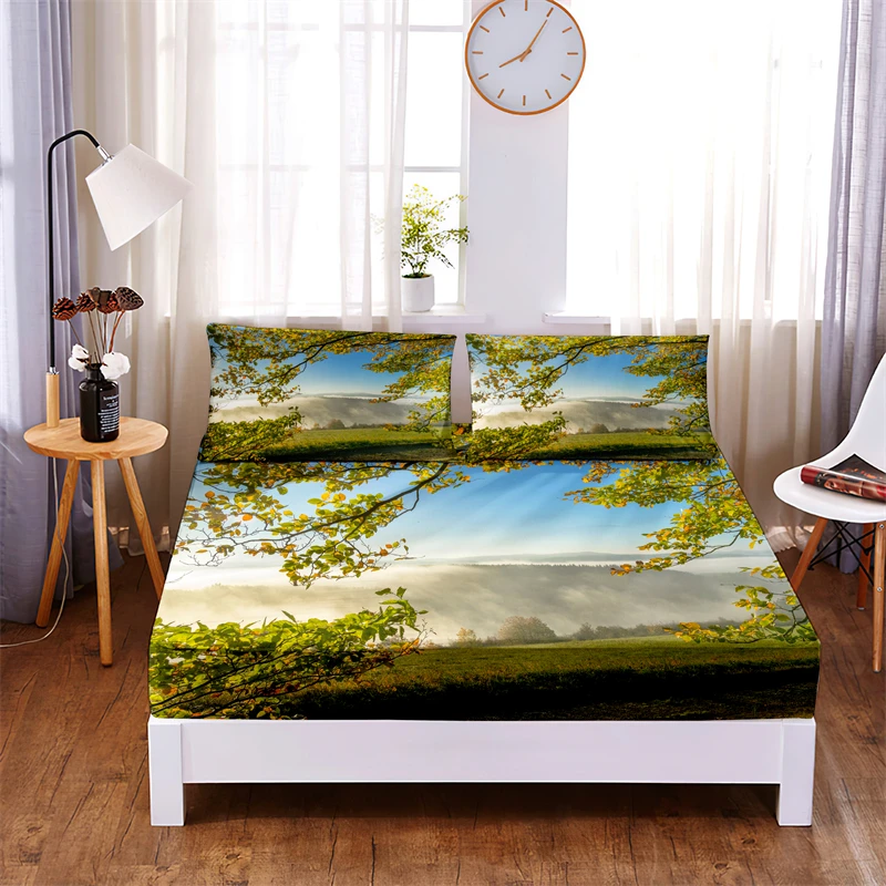 Очаровательный чехол для матраса с цифровой печатью в виде леса, 3 предмета, чехол для матраса с четырьмя углами и эластичной лентой, простын...