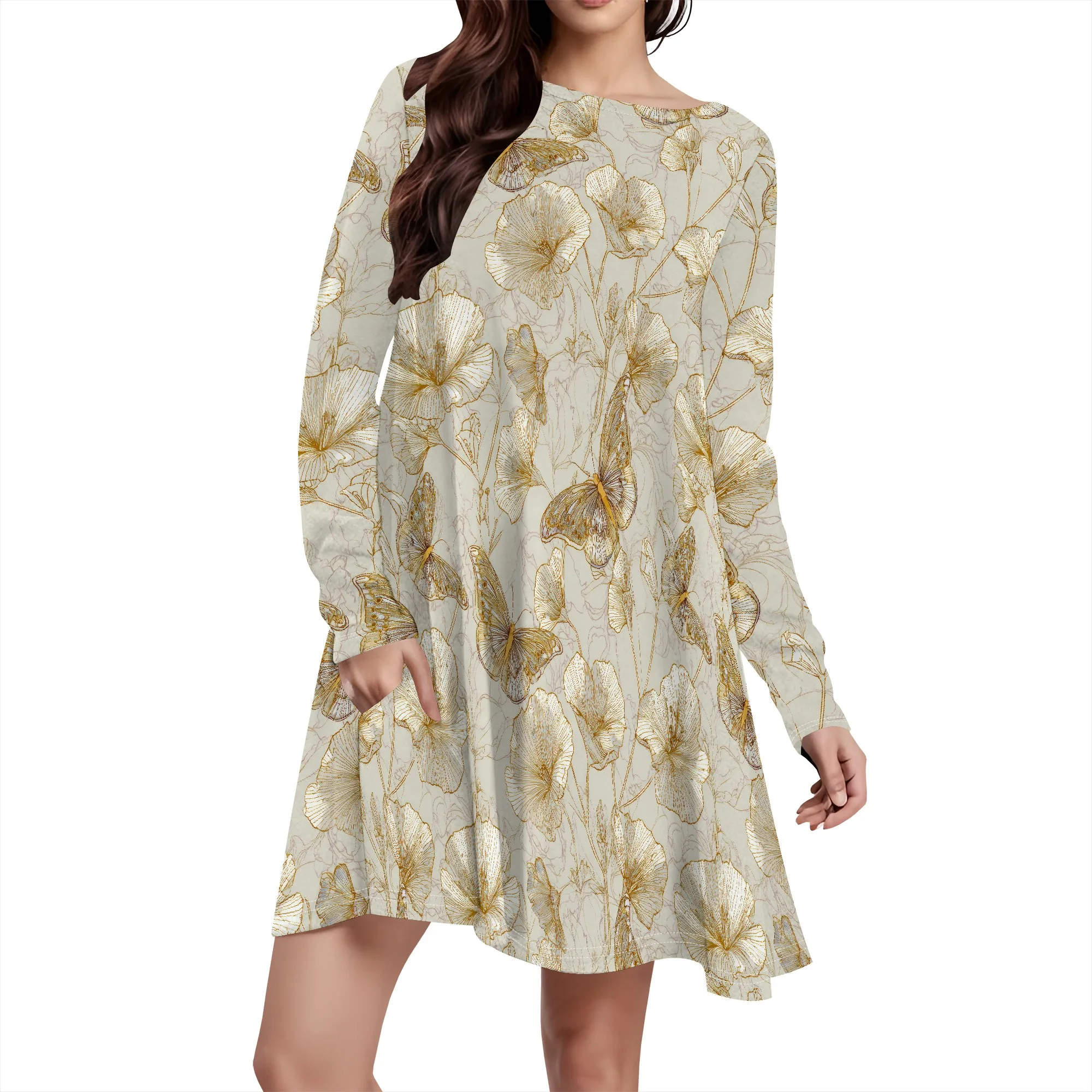 Ele Blue Long Sve irt Женский милый дизайн Sensation Осень Зима Профессиональный прямой крой Корейский Sle Butt...
