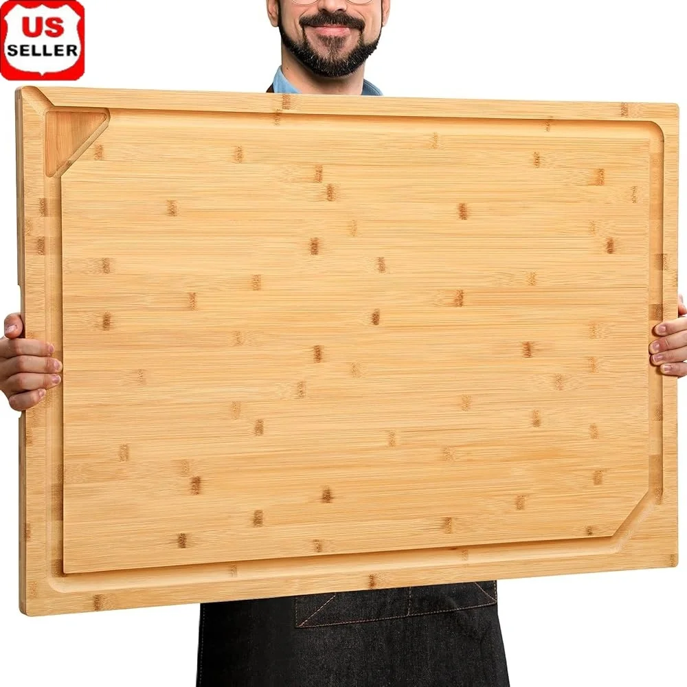 Очень большая бамбуковая разделочная доска с канавками для сока и ручкой. Многофункциональная кухонная разделочная доска. Блок мясника.