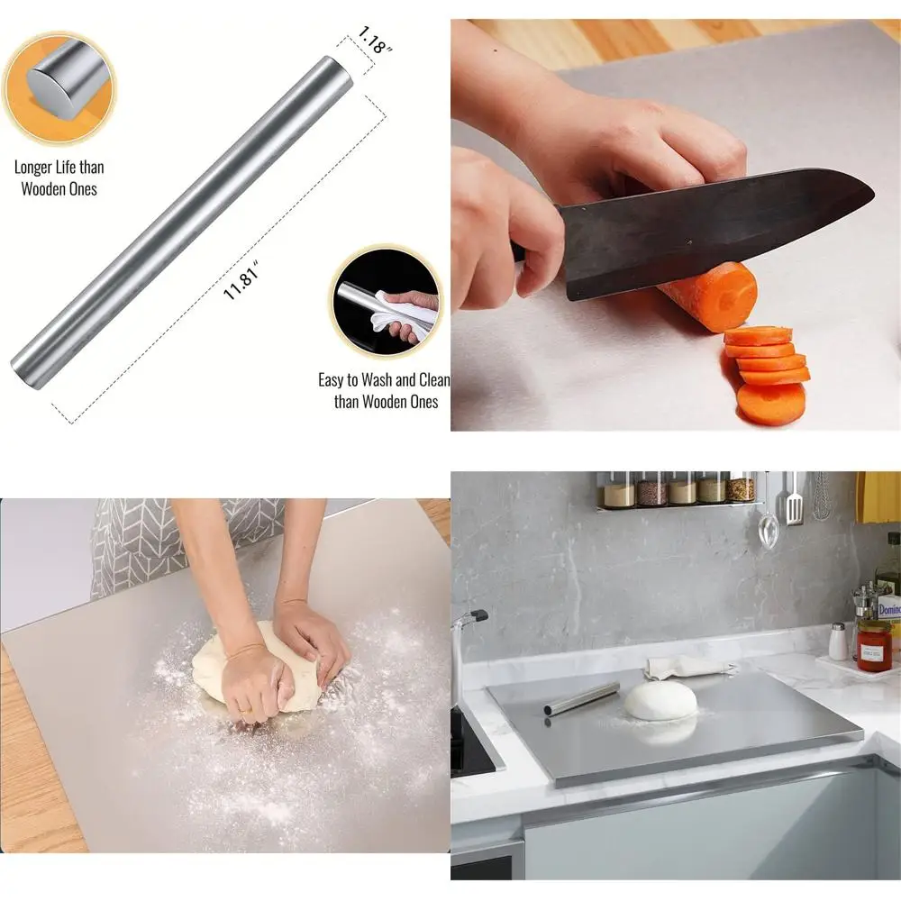 Очень большая разделочная доска из нержавеющей стали с губкой, 32x20 для выпечки, замешивания и изготовления лапши с скалками