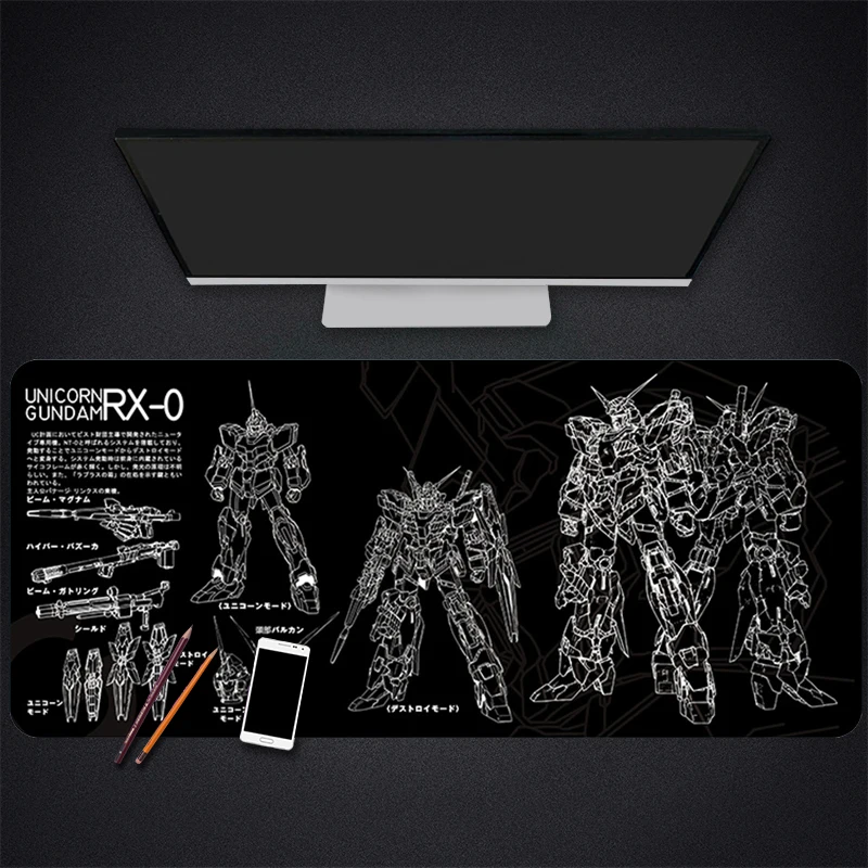 Очень большой коврик для мыши GUNDAM, игровой водонепроницаемый коврик для мыши, Нескользящий Резиновый Настольный коврик с неблокируемым кра...
