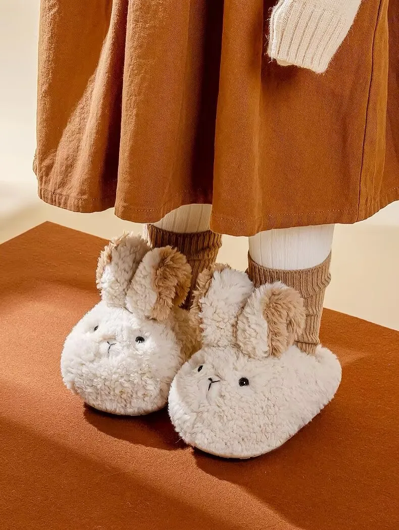 Очень милые детские тапочки с 3D кроликом, зимние теплые нечеткие плюшевые домашние нескользящие домашние тапочки для девочек, напольные шлепанцы высокого качества