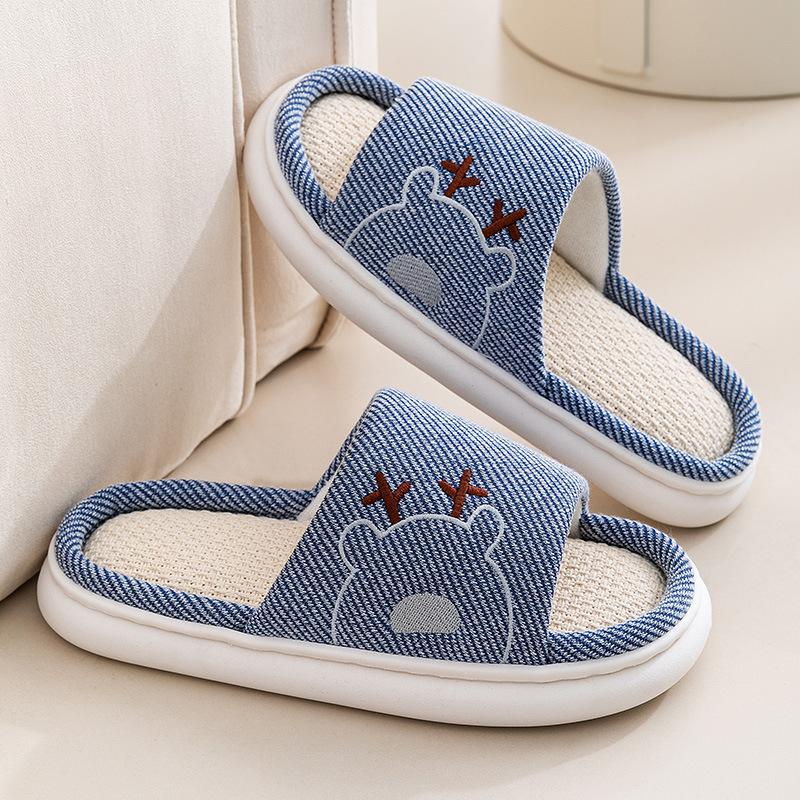 Ощущение наступания на какашку Детские льняные тапочки Женские домашние тапочки на толстой подошве для пар из хлопка и льна Классные летние мужские тапочки 44-45
