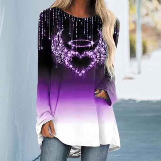 О-образным вырезом с длинными рукавами Блестящие стразы Блузка средней длины Сердце Крылья ангела Узор Градиент