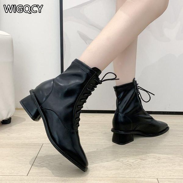 2020 autumn new leather women's boot square heel round toe rear zipper short tube martin boots retro thick heel boots w28, Black