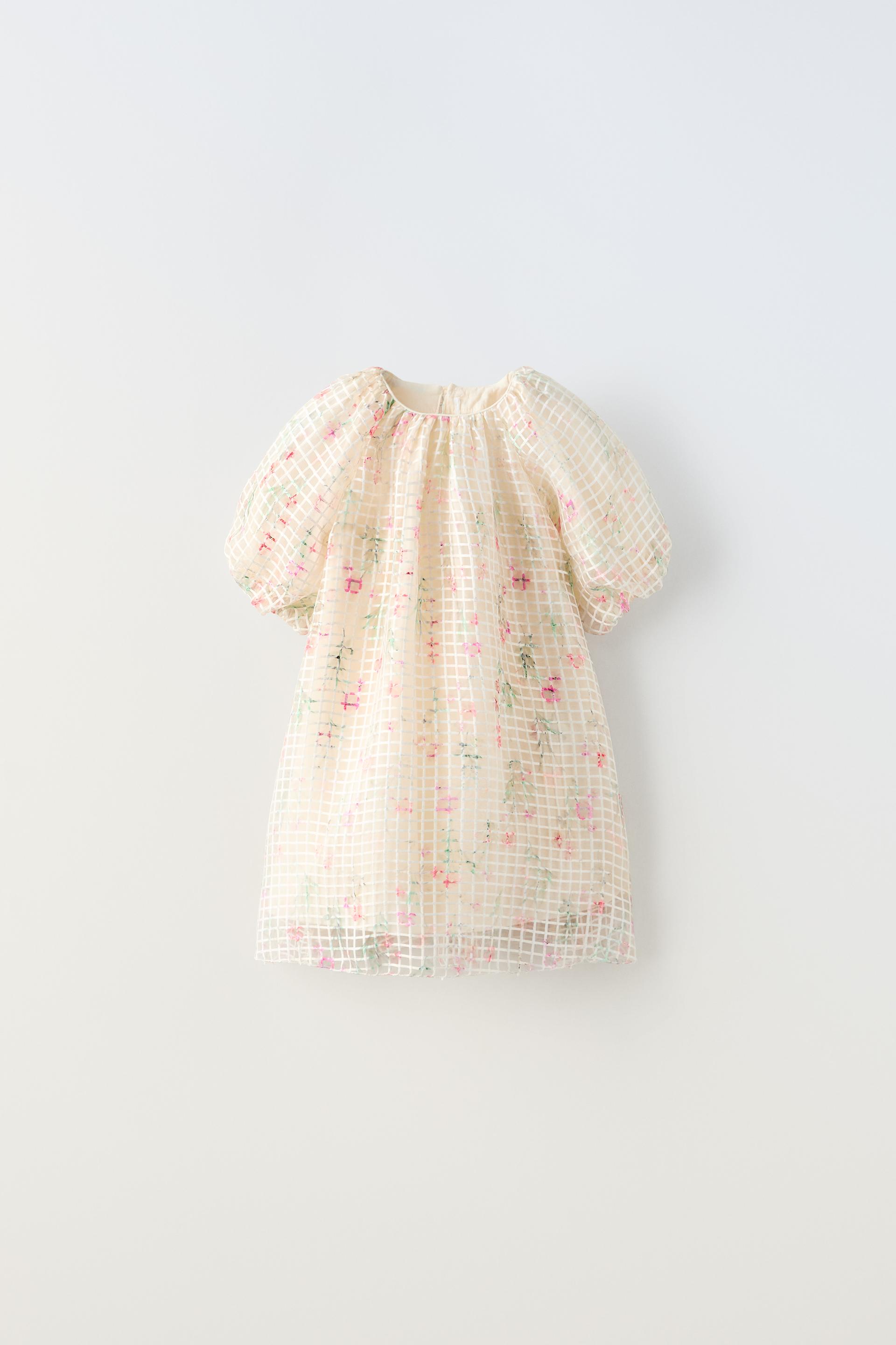 ПЛАТЬЕ ИЗ ОРГАНЗЫ С ЦВЕТОЧНЫМ ЦВЕТОМ И КЛЕТКОЙ