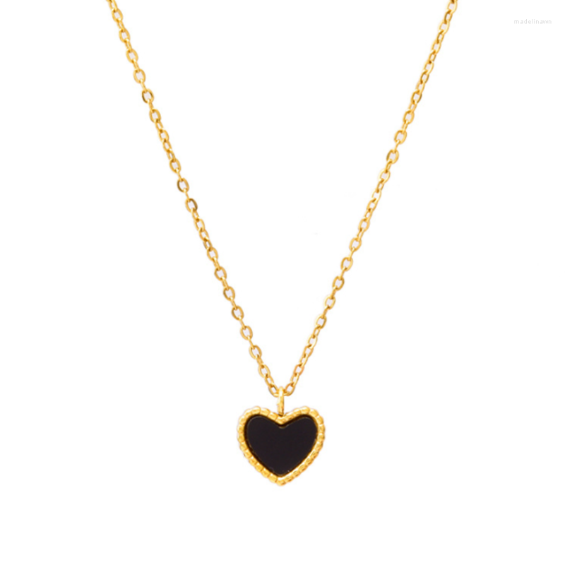 Chains 316L Stainless Steel Black Acrylic Heart Pendant Necklace Ladies Fashion High Jewelry Accessories SAN299
