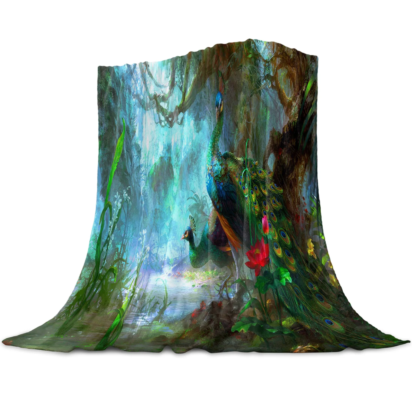 Павлина лес камень коралловые флисовые одеяла фланелевые покрывала мягкий теплый одеяла для кровать диван с начесом Обёрточная бумага оде...