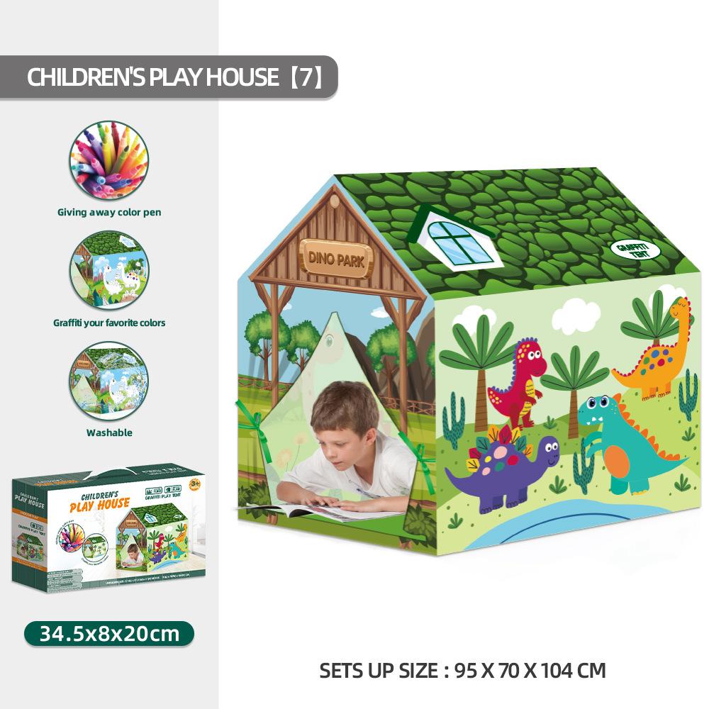 Палатка для свободного использования в помещении, детская палатка с граффити своими руками, простая в хранении моющаяся игровая палатка зелёный