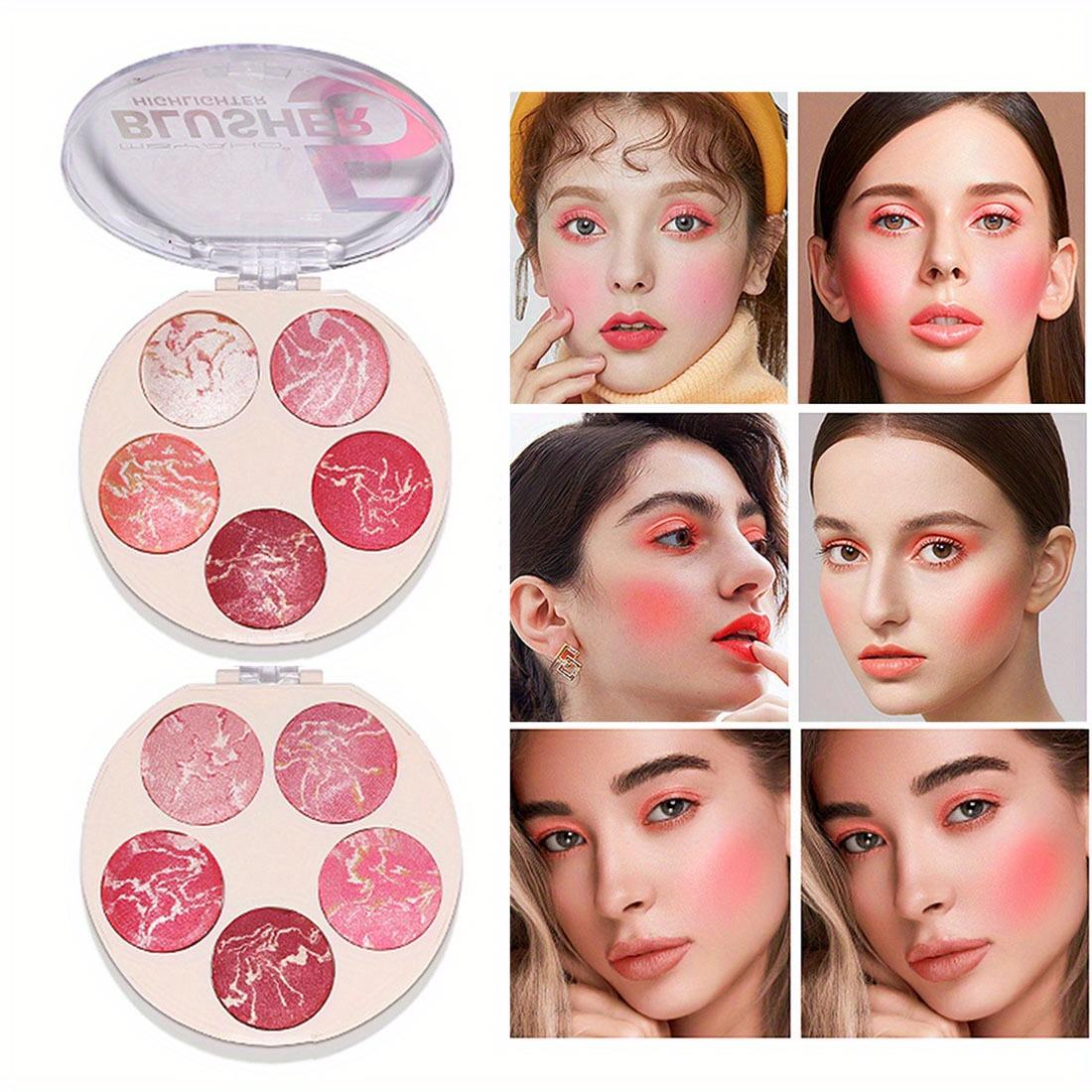 Палитра румян 5 цветов Глаза Щеки Губы 3 в 1 Лицо Перламутровые румяна Крем-хайлайтер Контурная пудра Матовые тени для век Запеченная пудра 01#