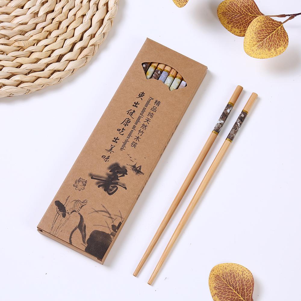 Палочки для еды из бамбука с мраморным узором, без плесени, пять цветов, одноразовый набор премиум-класса для дома и отелей