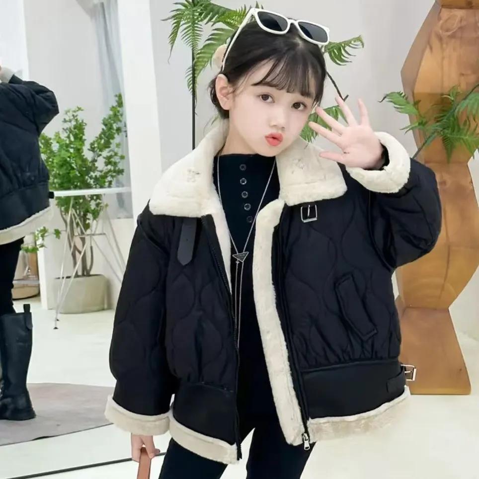 Пальто для девочек с хлопковой подкладкой в стиле пэчворк на осень-зиму с мехом из шерсти в стиле пэчворк на хлопковой подкладке в стиле мода 100cm