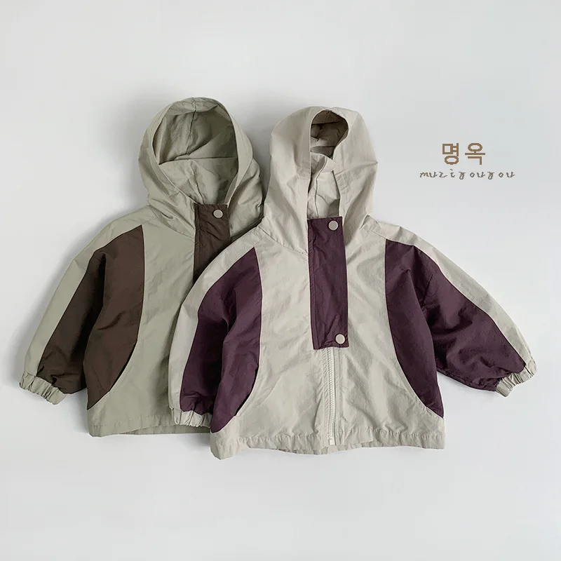 Пальто для маленьких девочек и мальчиков, детская лоскутная верхняя одежда на молнии, модная куртка с капюшоном для малышей от 1 до 6 лет, детская одежда в корейском стиле