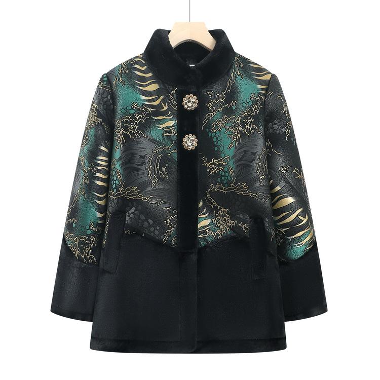 Пальто для матерей среднего возраста на осень и зиму, новый стиль, для людей среднего и пожилого возраста, утолщенное пальто из искусственного меха, норковое хлопковое пальто, куртка 5XL зелёный