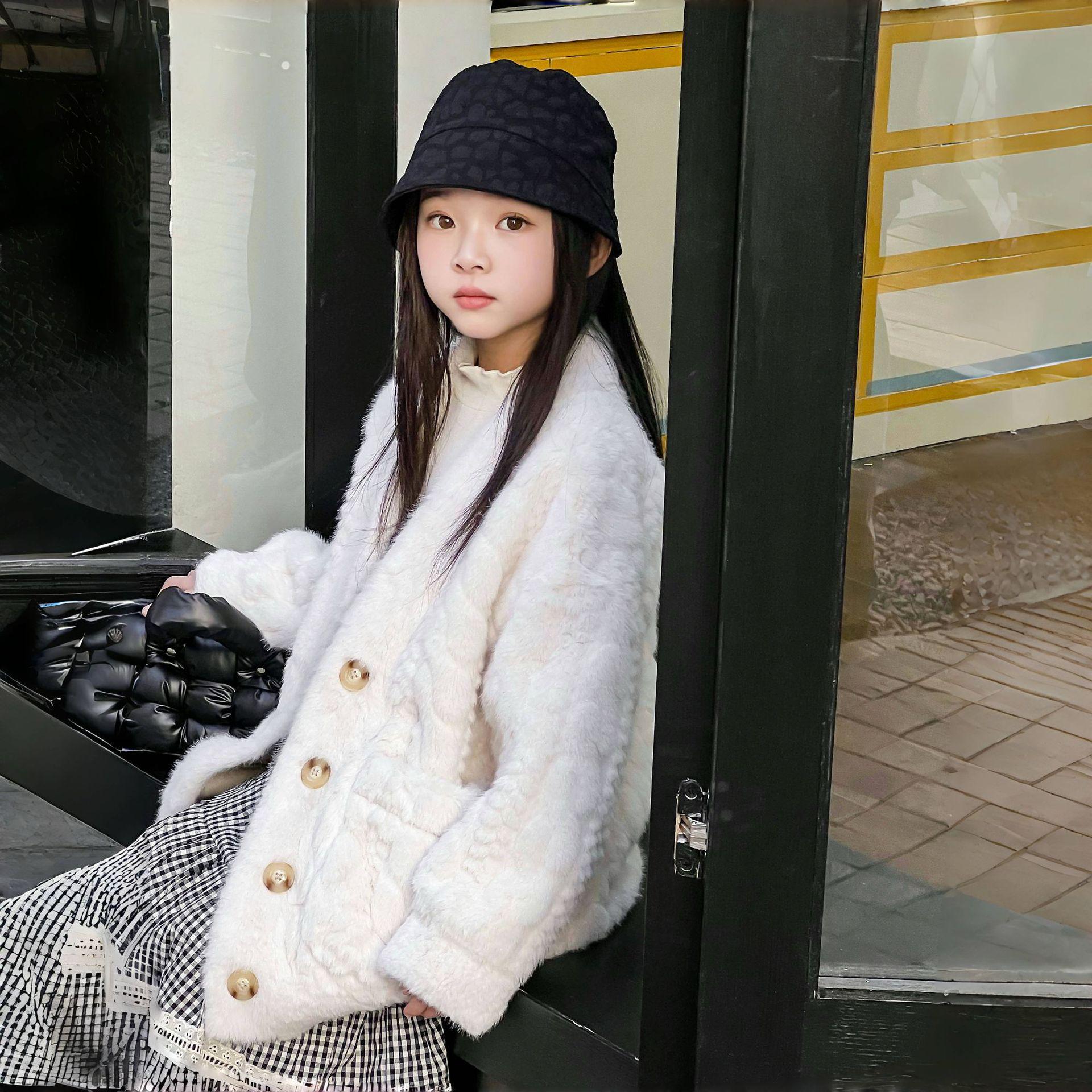 Пальто из искусственного меха для девочек в корейском стиле со шарфом - Размеры M и L, Коллекция Осень/Зима 100cm (for height 105-110cm)