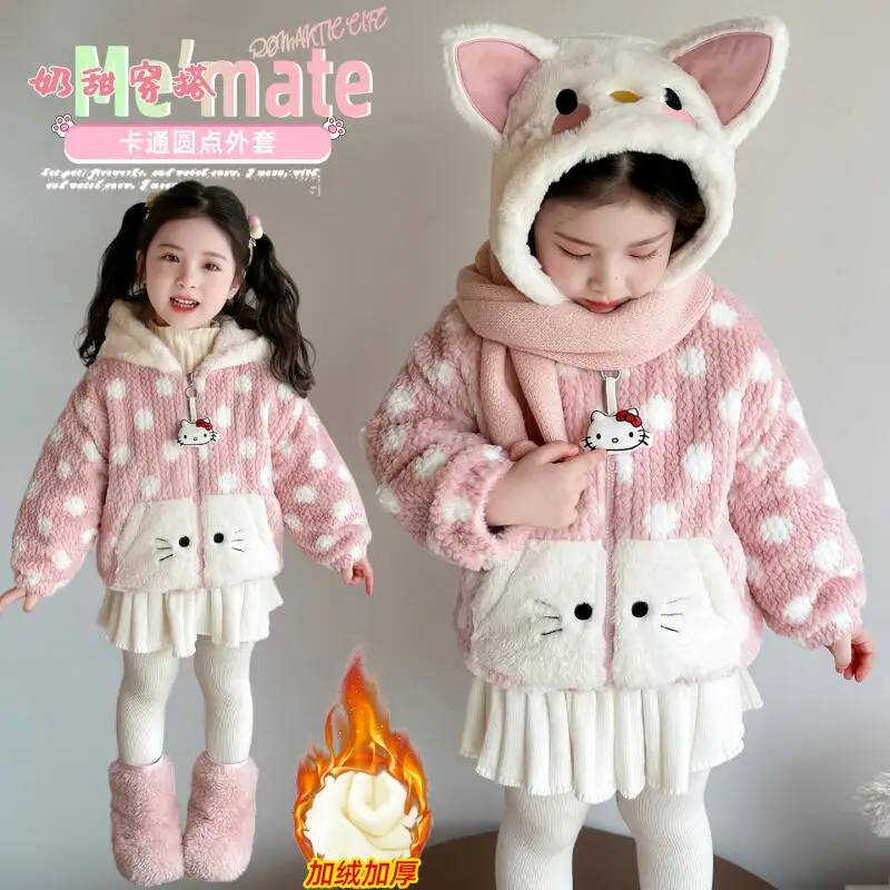 Пальто с героями мультфильмов для девочек «Hello Kitty», осень-зима 2024, новое детское толстое теплое хлопковое пальто в стиле каваи в стиле аниме, милая мягкая удобная одежда