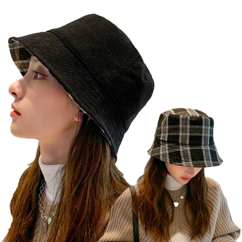 Панама женская двухсторонняя Складная в клетку, теплая однотонная шапка-мешок для путешествий, широкая винтажная плоская шляпа, зима-осень ...